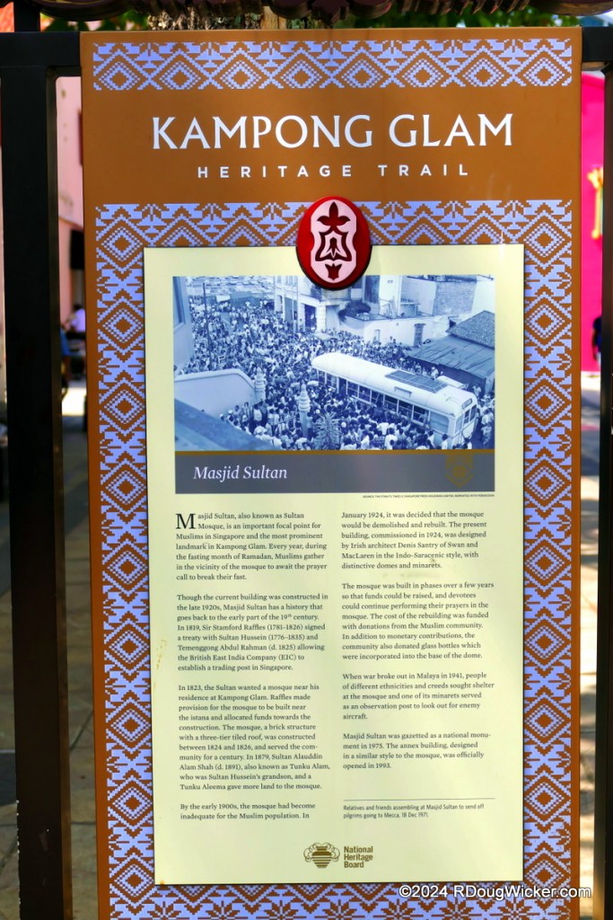 Most of the photos taken in this this week’s and next’s subseries of articles were in Singapore’s Chinatown, Little India, and Arab Street in the Kampong Gelam (also called Kampong Glam) area. Today’s article in particular focuses on the Muslim section of Kampong Gelam, with particular emphasis on the Masjid Sultan Mosque.