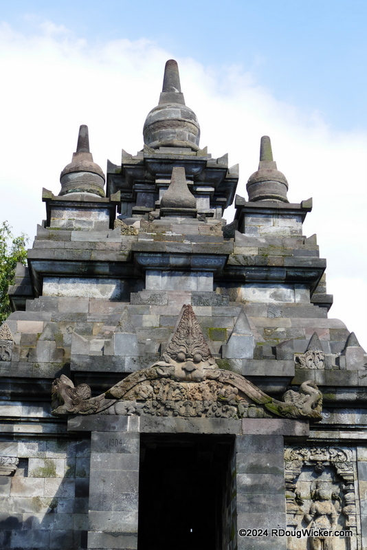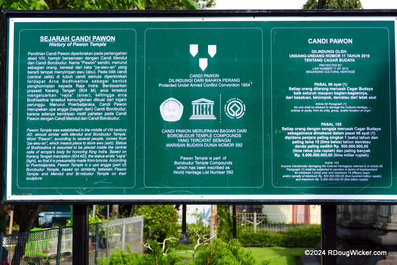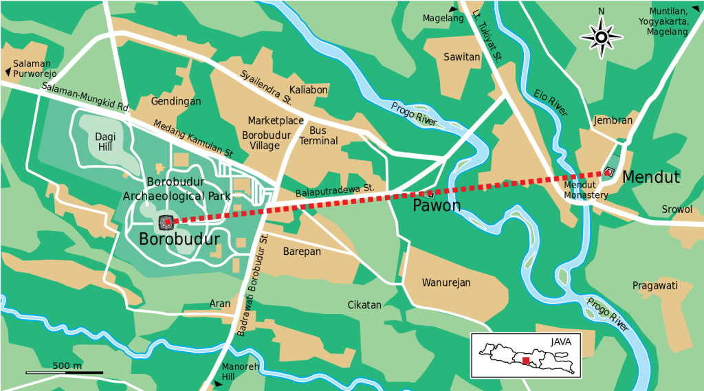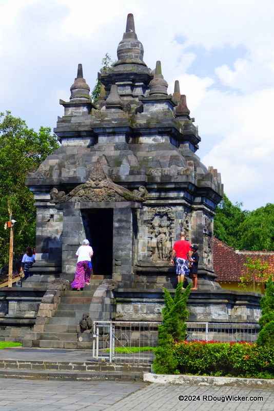 As I mentioned in a preceding article, there are three Buddhist temples in this area. And if you take a map and connect them, you’ll get a straight line. Borobudur lies 1.09 miles/1.75km west. Mendut is east and lies slightly closer to the middle temple, .71 miles/1.15km. We did not visit Mendut, but we did travel from Borobudur to the middle temple, Pawon.