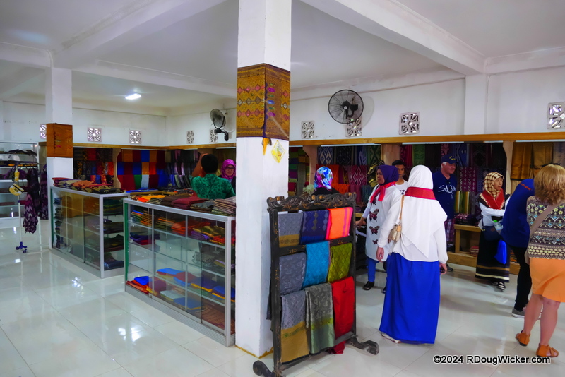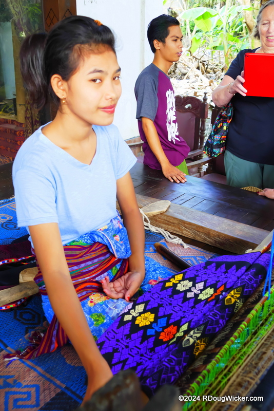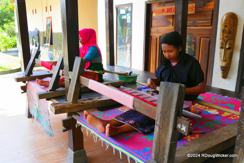 Disembarking our vessel, Holland America’s MS Volendam, we joined up with a tour group and headed out to observe weavers plying their artistic and colorful trade. I believe this particular village was Sukarara, which lies about thirty minutes east of the cruise terminal.