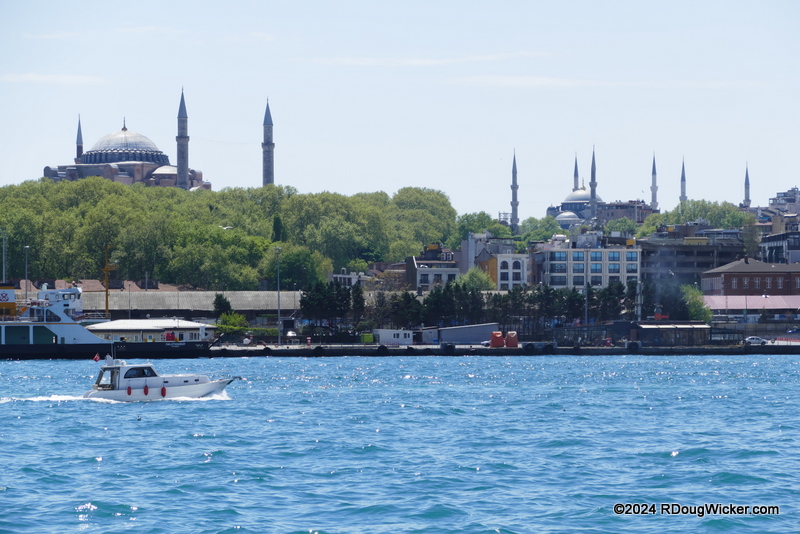 This next image captures both the Hagia Sophia (current building completed in 537; originally as a Greek Orthodox church) and the Blue Mosque (completed in 1609):