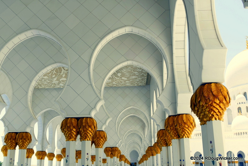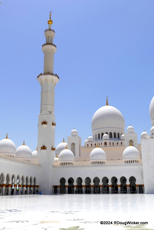 Today I’m going to take you into the courtyard of the Sheikh Zayed Grand Mosque complex. Here you’ll get a glimpse of just some of the many reasons why this immense undertaking took some eleven years to complete. You’ll also get a sense of the meticulous detail that went into the design and decoration of this magnificent example of Islamic architecture. I’m also going to do something I’ve not done in a while. As there is so much to learn about this building, its features, Islam, Abu Dhabi, and the area in which all are located, you fill find a list at the end of this article featuring links for more information. I’ll be posting a link list such for the next five weeks as well. I believe this will be less confusing that clicking on links embedded with the text of this series of articles.
