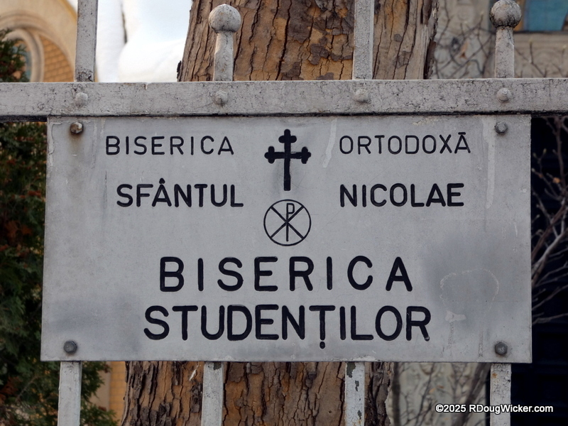 Our base of operations on this visit to Bucharest, Romania, was the Moxy Bucharest Old Town. We’ve stayed at Moxy hotels before, so we had every expectation that this would be a pleasant and affordable option. We were not disappointed. And being right in the Old Town section of Bucharest was a real plus. We were mere minutes walking distance from a lot to see and do, such as being only three minutes from Biserica Sfântul Nicolae (Saint Nicholas Church). You’ll know you’ve found the right church when you see this sign on the gate: