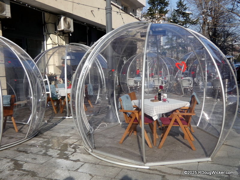 It appears that even a cold, snowy winter will not deter a hearty Romanian from enjoying that outdoor eating vibe. Heated transparent domes covered sidewalk tables at several venues around town: