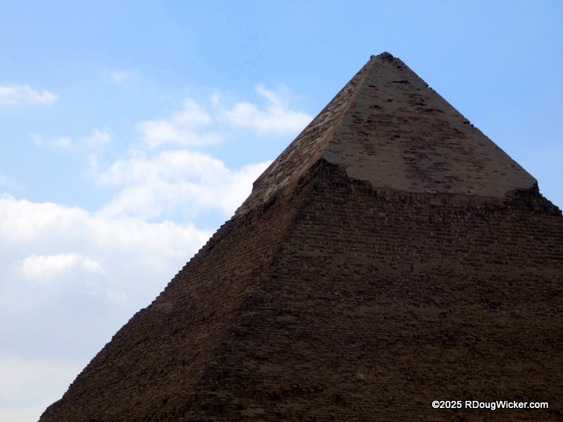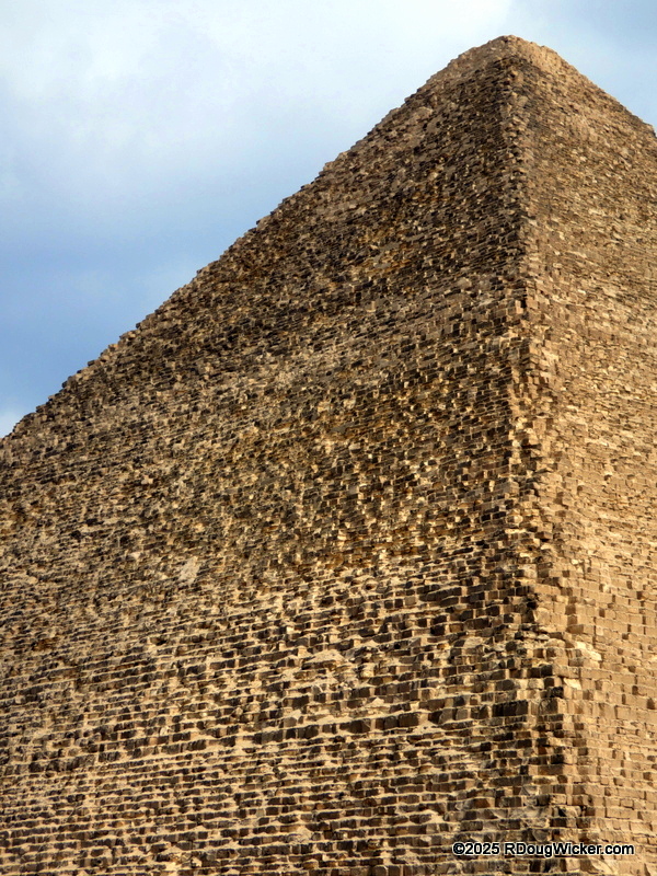 Not that there’s a whole lot of difference in height between the two. Khafre stands 448 feet/136.4 meters at its current height. But it just looks so much more impressive. The difference in the tops alone make it so: