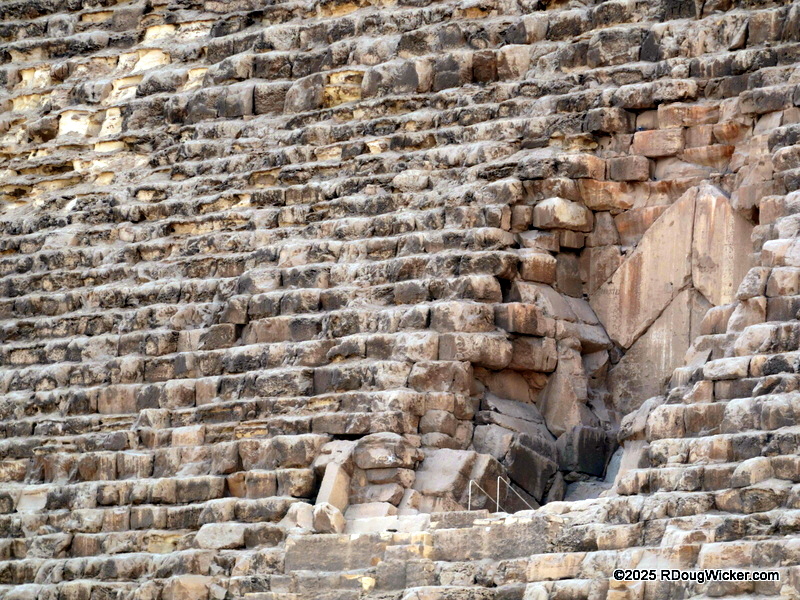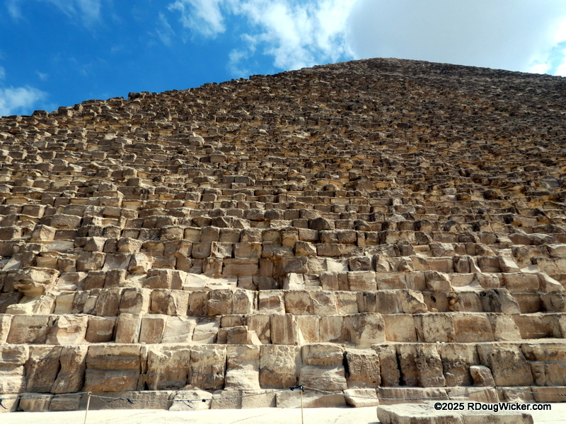 But, oddly enough, when I picture the Giza Pyramids it’s not the Great Pyramid that forms a mental picture in my mind. Like many people, that mental image is of the middle Pyramid of Khafre. I suppose that’s because it has steeper sides, which make it appear taller, and it is the only one of the three that retains at least some of its original cladding. Here’s a comparison of the two: