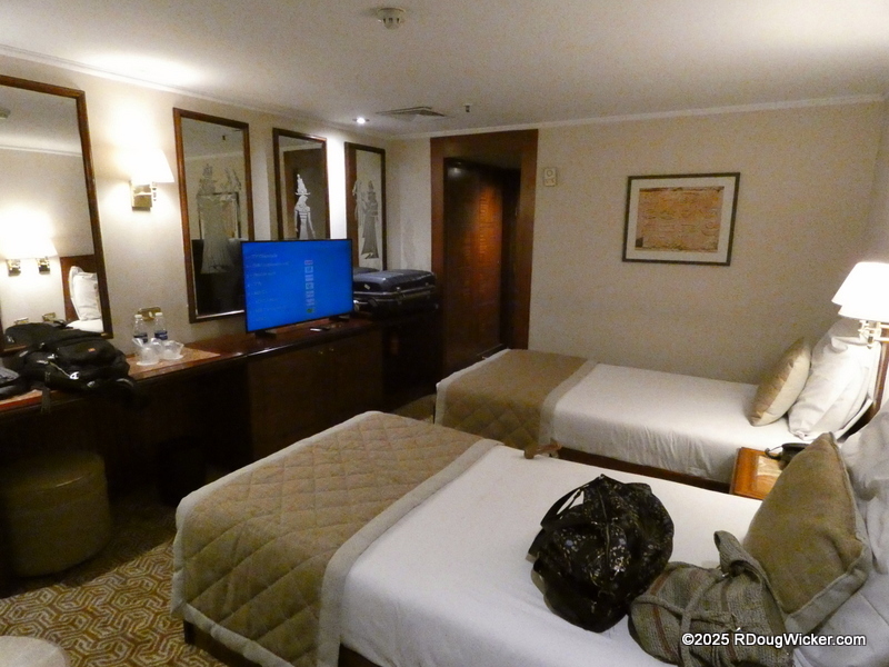 There are no “inside” cabins on these River Nile boats. Everyone has an exterior cabin with exterior views. But before you get to your room, even the hallways are nicely appointed: