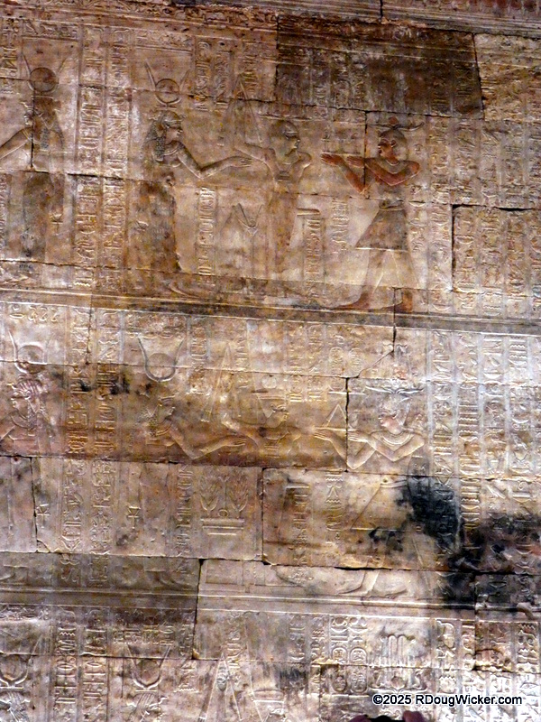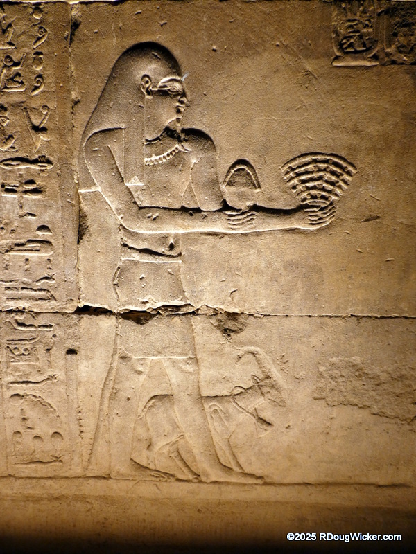 As for today, the emphasis is on the hypostyle halls and the sanctuary, which I now present with today’s photo gallery/slide show. By the way, contrary to recent Ancient Alien Conspiracy Theory, the Egyptian king in the upper left image is not connecting to a wifi signal. That is the hieroglyphic representation of the papyrus plant. Sorry if I burst your bubble.