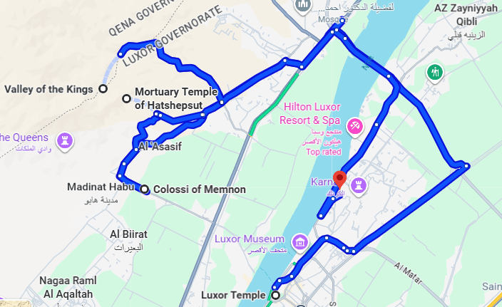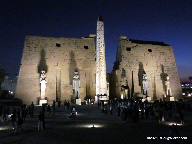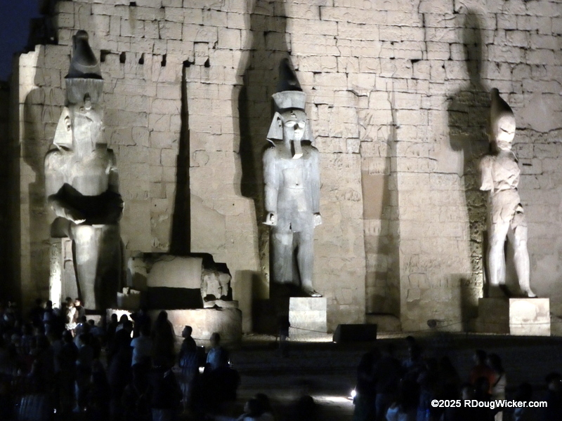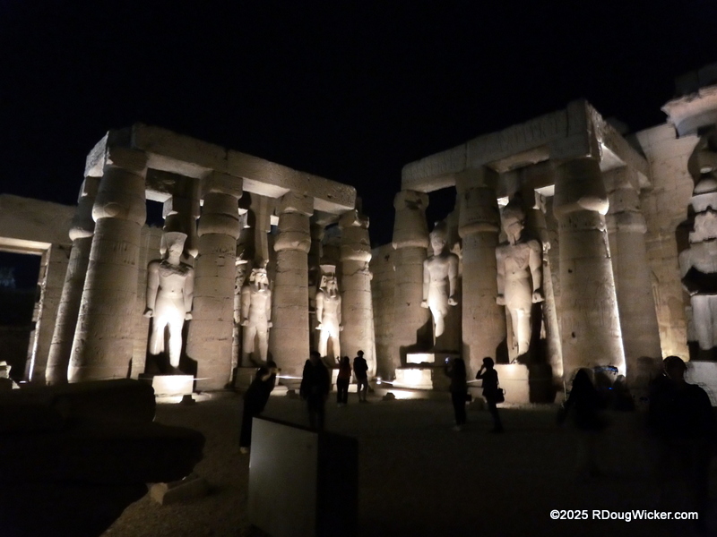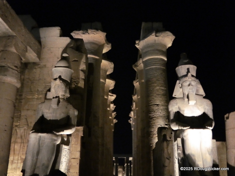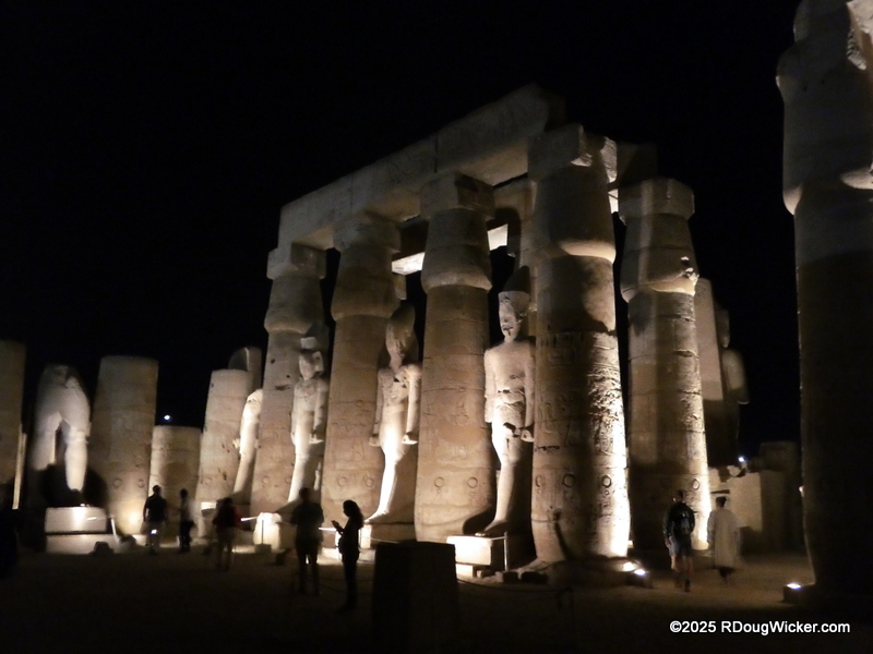 We would be overnighting in the city of Luxor because we had a lot of sightseeing to do the following day. And all those agenda items meant we had to visit Luxor Temple now, in the dark, or miss it altogether. In case you’re wondering what all was in store for us, the next day would include the Colossi of Memnon, the Mortuary Temple of Hatshepsut, the Valley of the Kings, and the Karnak Temple Complex. So, you see what’s coming up in this blog over the next five or so weeks.