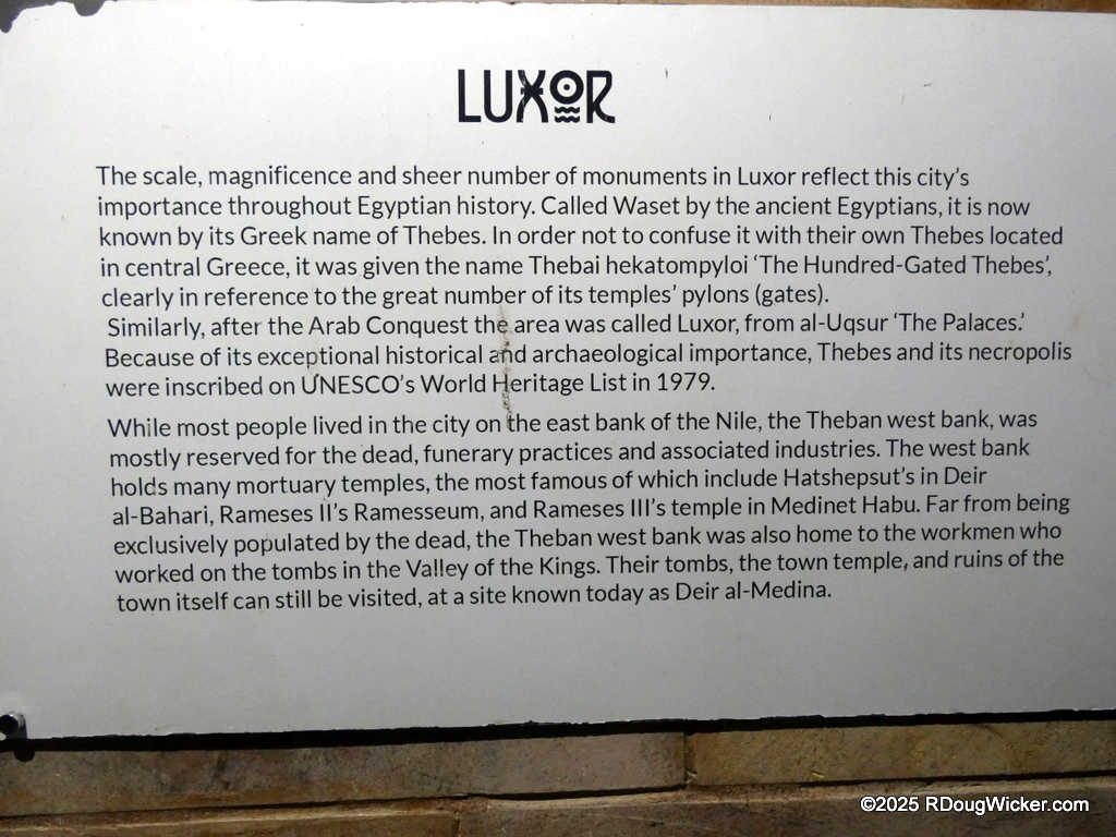 And while that series will finish up Egypt, we still have a long way to go on this month-long trip that started with a visit to the Coral Castle in Homestead, Florida; then continued on to Bucharest (and many other sights in Romania); then Cairo. Still ahead of us on this journey are Istanbul; Cape Town, South Africa; a cruise along the west coast of Africa; finishing up with a flight to the Netherlands to visit Keukenhof and other sights in and around the Amsterdam area. But this week I’m concentrating on Luxor Temple, so let’s get back to that: