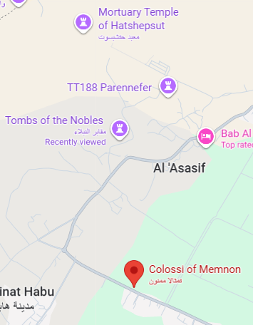 But here’s a closeup map to help orient you among the Colossi, Valley of the Nobles, and the Mortuary Temple of Hatshepsut: