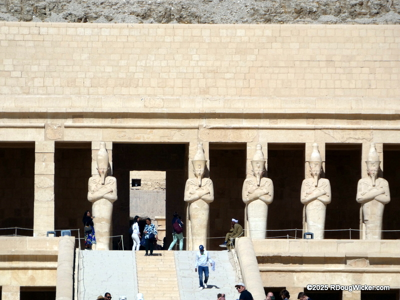 As you approach Hatshepsut’s temple, you’ll notice a series of bearded figures. Why bearded figures for a queen? Because she felt the need to establish her authority as ruler in a historically male-dominated role.