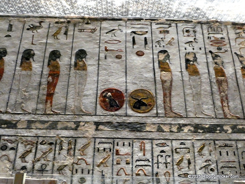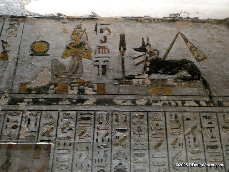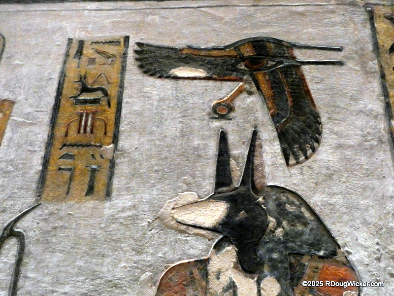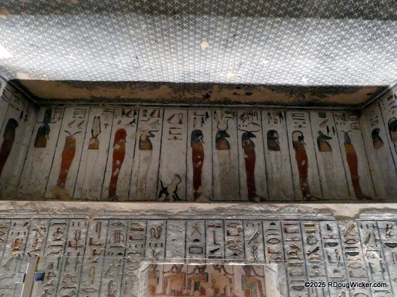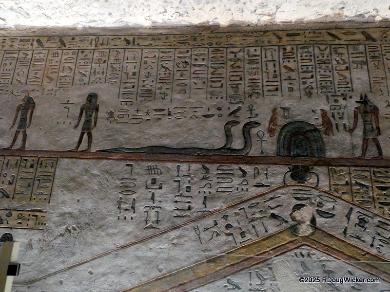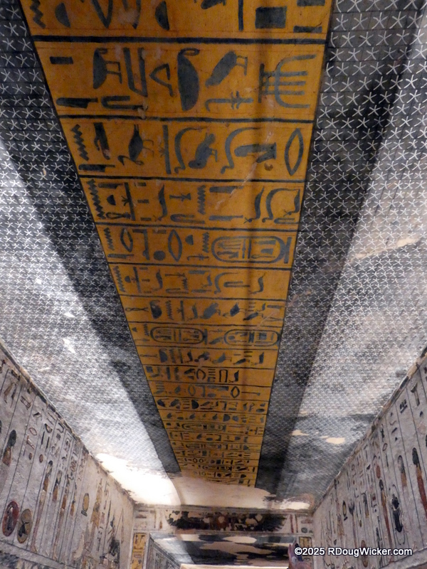 We’re now heading deep into KV11, the burial tomb of Ramesses III. But before we get to today’s photo gallery/slide show, time for a little history lesson on the politics of Ancient Egypt. Just in case you thought only the Roman Empire held political intrigue and ascension by murder, consider the tale of Ramesses III. This poor fellow was murdered on the orders of his secondary wife Tiye and her eldest son Pentawer in what became known as the Harem Conspiracy. Ramesses III’s mummy, on which great pains were taken to hide his slit throat, was so grotesque that it became the inspiration for Boris Karloff’s character in The Mummy (Universal, 1932). Behold what happens when your wife doesn’t believe in spitting the assets in a community property state divorce and your kid wants to take over the family business: