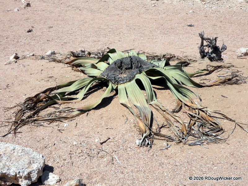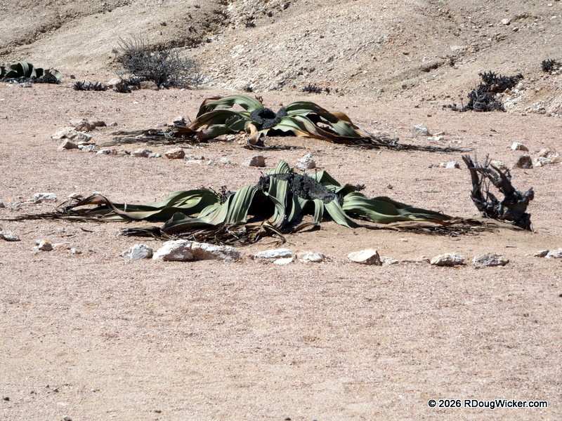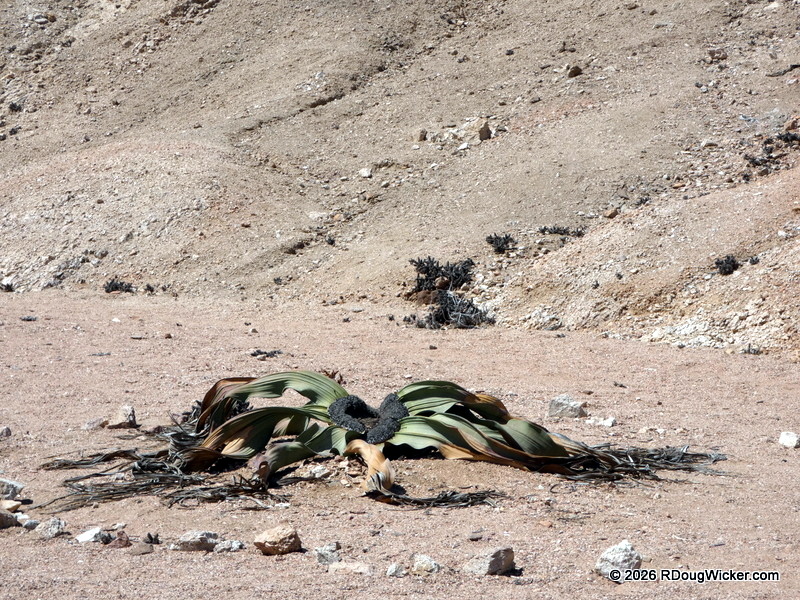 Our next tour stop after Dorob National Park was Namib-Naukluft National Park. This area receives on average 106mm/4.2 inches of rain a year, and most of that falls between February and April. One would think that with that little amount of moisture, plants would be rare. Well, think again. There are several plant species here, but the rarest is probably the Welwitschia, which is native to only Namibia and Angola in the Namib Desert.
