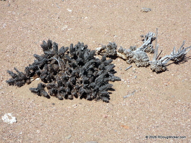 Welwitschia isn’t the only plant species growing here. There’s also this little guy, which I believe may be an aroena (Quaqua mammillaris):