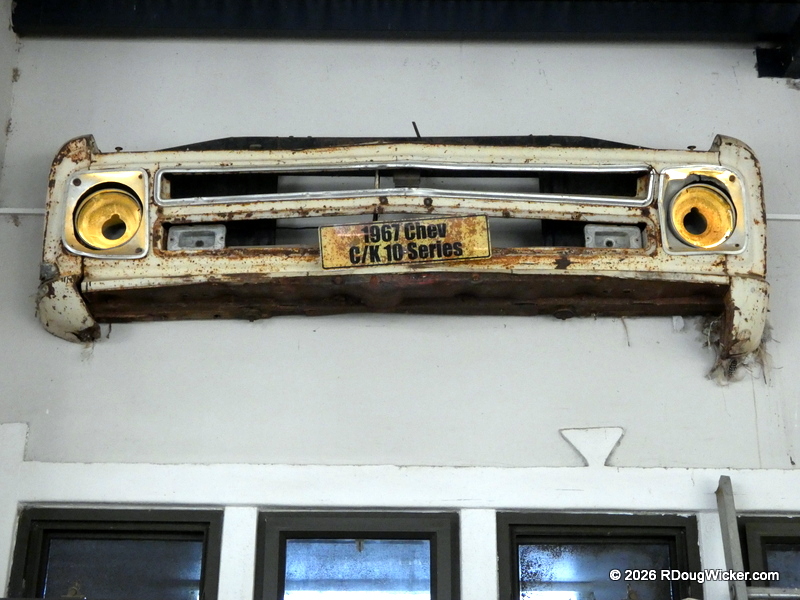 Here we found a bar, restaurant, myriad picnic tables, the ubiquitous souvenir shop, picturesque rusted vehicles, and, hanging on the walls, grills from cars and pickup trucks. Old pickup trucks seemed very well represented: