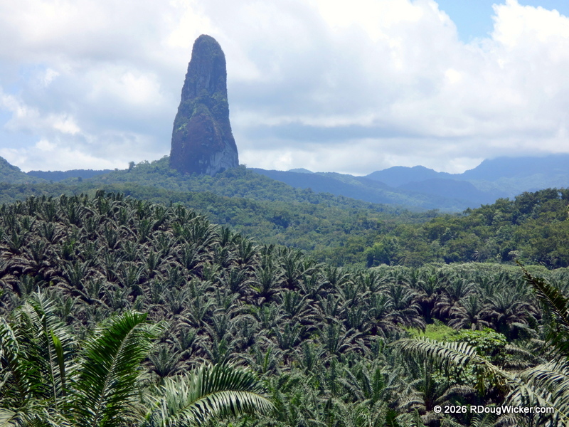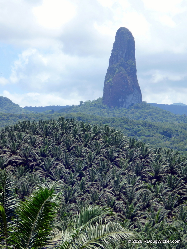 Pico Cão Grande is a massive volcanic plug that juts 1,215 feet/370 meters above surrounding terrain, towering over the many palms below. If this rock looks like a difficult climb, you would be correct. Moss makes the rock slippery, and São Tomé island forest cobras make any attempted climb adventurous, to say the least. Indeed, the first known attempt to reach the summit occurred in 1975, but success only arrived in 1991.