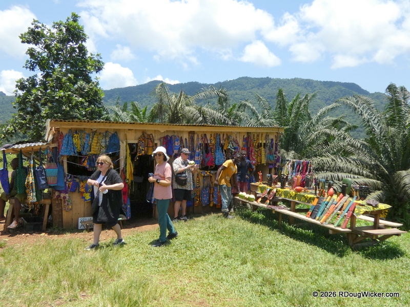 Making our way… carefully… back up the slippery rocks, we once again boarded our tour bus turned inland. Our next destination was perhaps São Tomé’s most iconic feature, Pico Cão Grande (Big Dog Peak). We alighted from the bus at an overlook, whereupon we were greated by the ubiquitous souviner stand:
