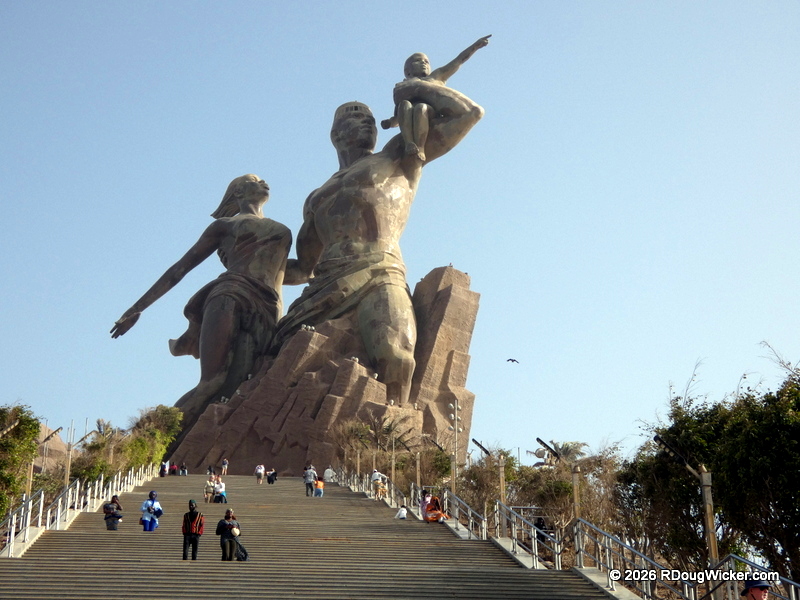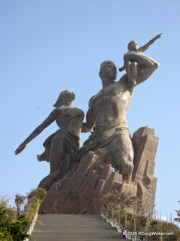 Back onto the buses, then a quick trip southeast to the African Renaissance Monument. This massive bronze sits atop a 100-metre/330-foot hill, and the statue itself rises 52 meters/171 feet above that.