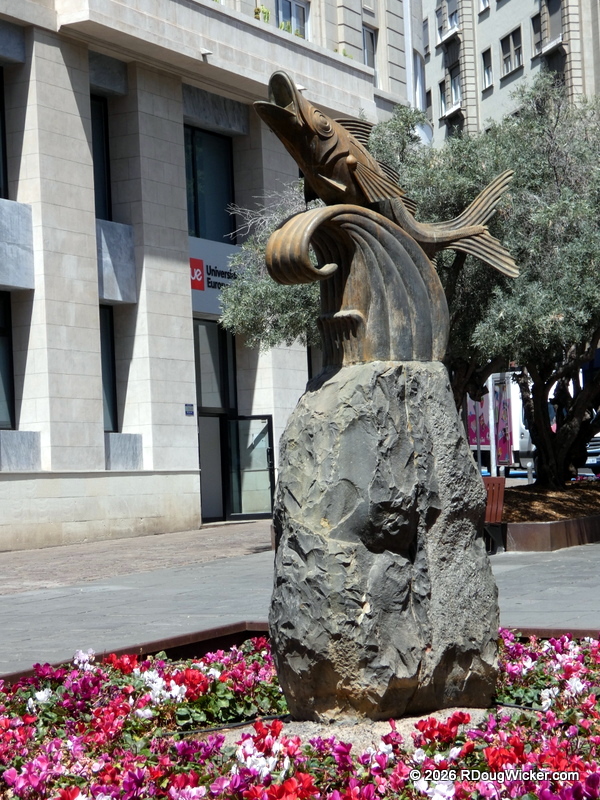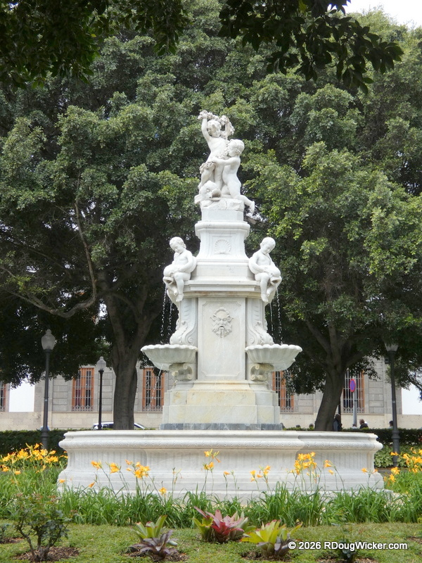 Fountains frequently feature flora (how’s that for alliteration?), and the neoclassical fountain in Plaza Weyler is not the exception. Plaza Weyler derives its name from Valeriano Weyler y Nicolau, 1st Duke of Rubí, 1st Marquess of Tenerife, and the Captain General of the Canary Islands from 1878 until 1883. The fountain was designed by Antonio Pintor Ocete in 1893. And those flowers I just mentioned? Here you go: