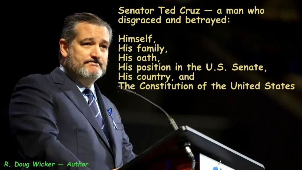 That letter is one I wrote to my Senator, the disgraceful and disgraced Ted Cruz of Texas. Tomorrow you shall have an opportunity to read precisely what I told Senator Cruz as to his culpability in last week’s insurrection, and his complete and total abrogation of his responsibilities to himself, his family, to the oath he took, his position in the United States Senate, his country, and to the Constitution of the United States of America.