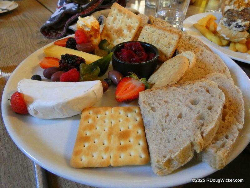 Cheese, fruit, fresh-baked bread, crackers, olives, and chutney