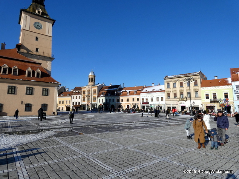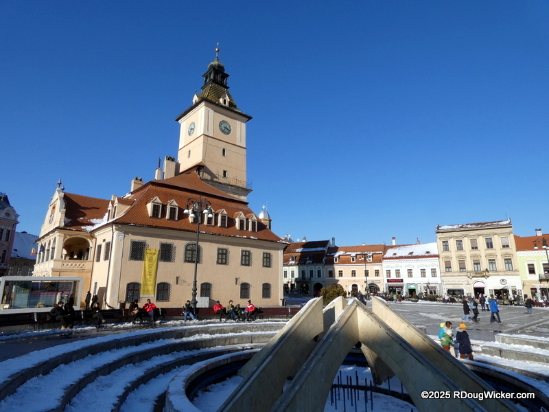 That structure lies just north of Casa Sfatului within the row of buildings lining the square in a gentle arc from north to northeast.