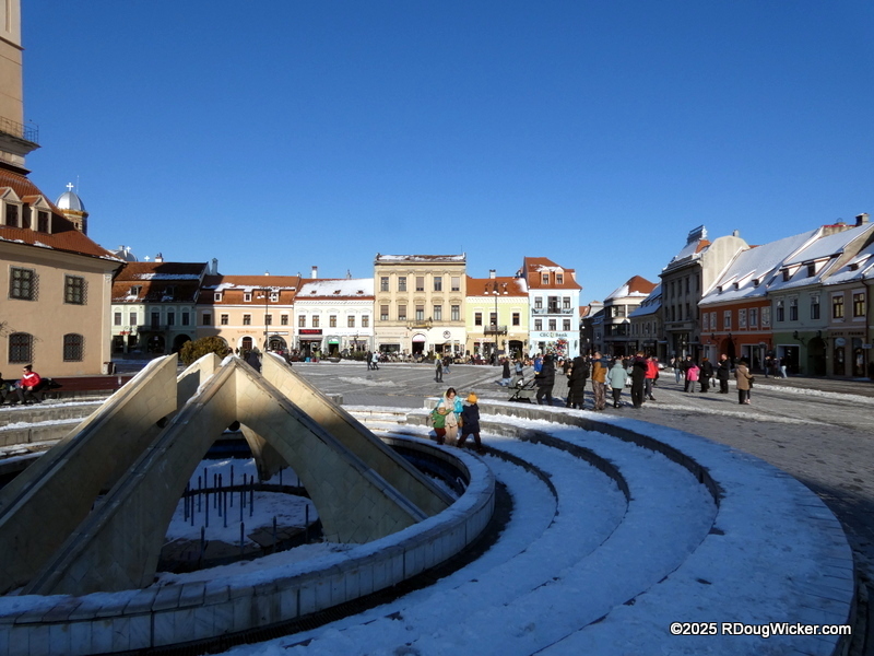 After our narrow escape from Castle Dracula (Bran Castle), we headed northeast to Brașov to catch our breathe and grab a quick bite (see what I just did there?). So, after alighting from our coach, we headed to Piața Sfatului (Council Square). Unfortunately, the sun was already sinking and time did not permit a lengthy investigation of this enchanting place. If it had, we definitely would’ve hit the nearby Biserica Neagră (Black Church). But by this time I was uncertain if we could take close proximity to either garlic or holy water, so we headed out for a very late lunch before we were due to rejoin our group.