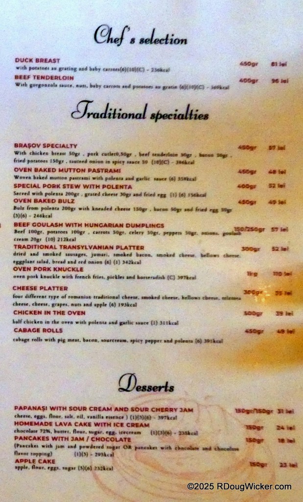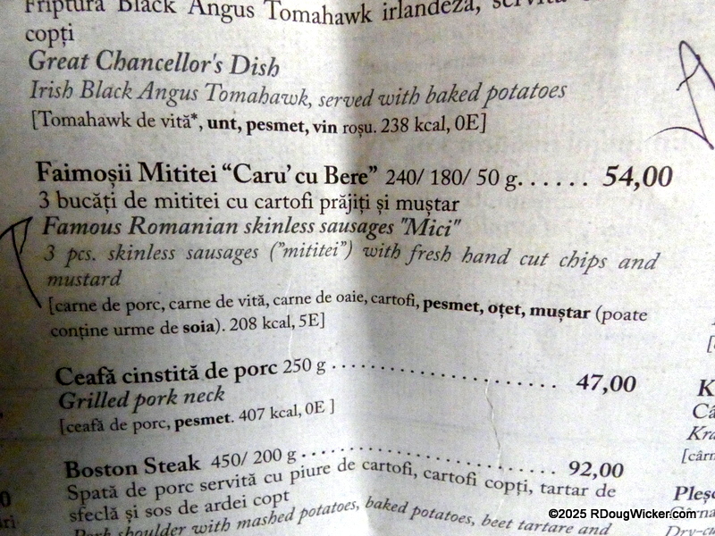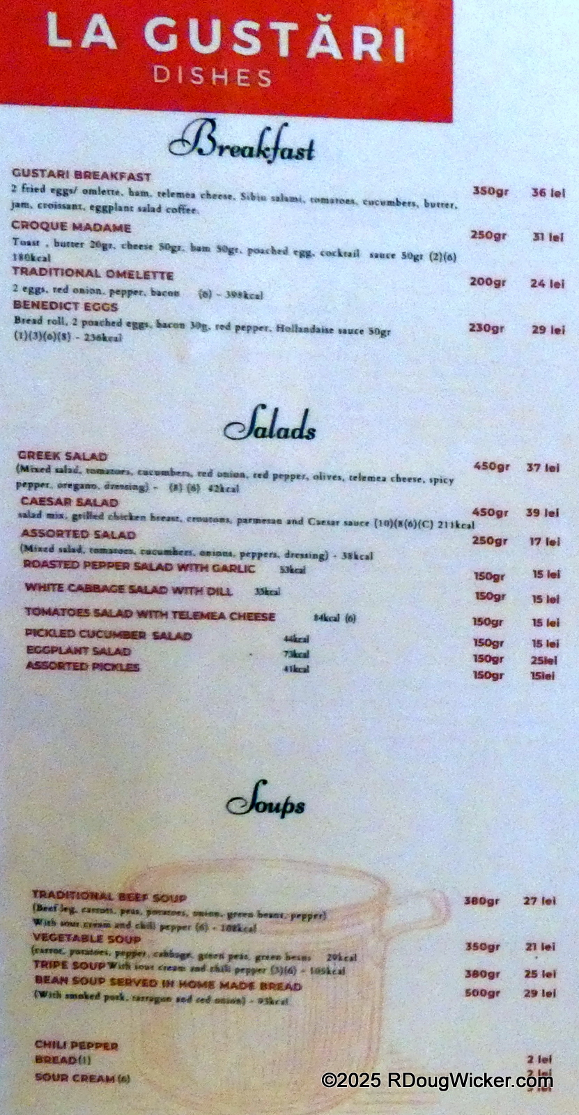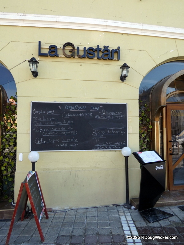 Our guide gave our group several recommendations for eating establishments here, and we chose the one he said had the best selection of true Romanian dishes. That restaurant is La Gustări: