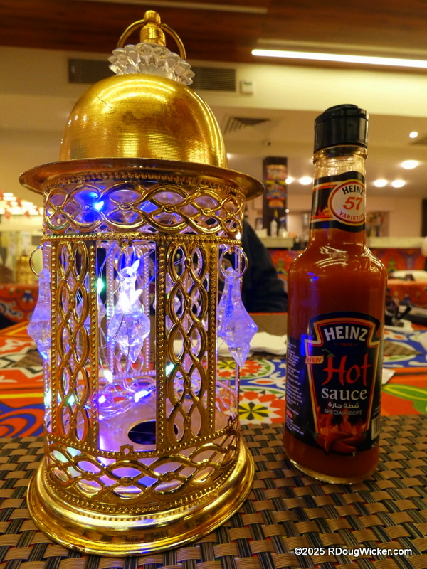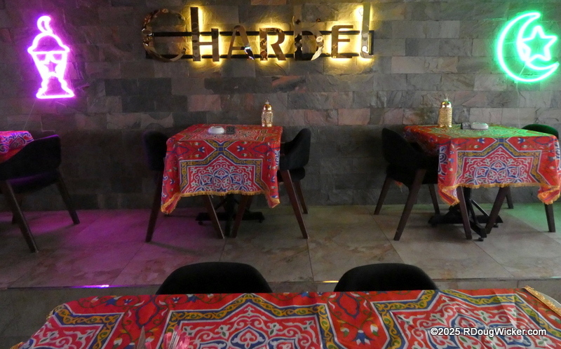 But is that warning still valid in 2025? I don’t know, but I was unwilling to test the premise. Also, as you’ll find out my upcoming 6 August article, you’re taking your life into your own hands if you even think of crossing the street in Cairo. So, heading out to dinner on foot is a real adventure. Fortunately, we found a very acceptable restaurant on-site at our hotel, Mar Charbel. As for the hotel, it was very well appointed, quite comfortable, and relatively quiet save for the street noise, which you get everywhere in Cairo. Our only quibble was during check-in, as the desk staff could not find our reservations. But the wait just gave Ursula time to set up a tour, which you’ve seen already.