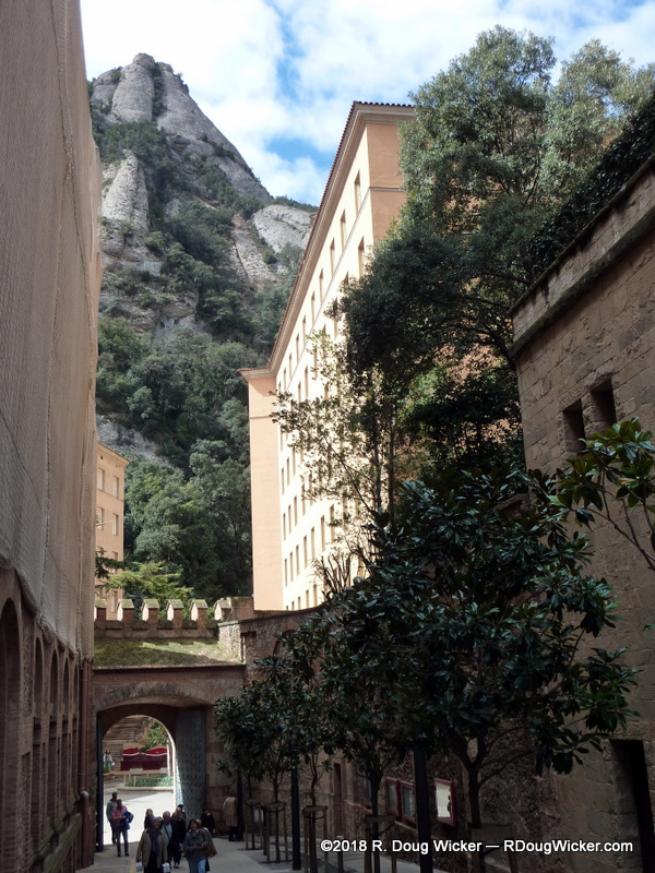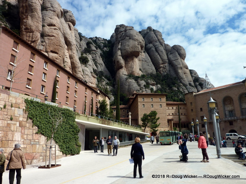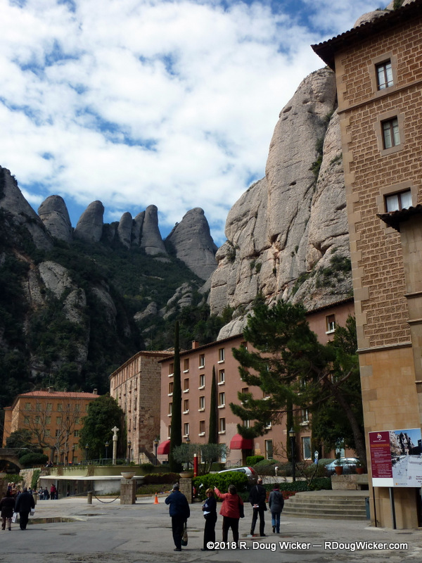 Aeri de Monsterrat took us high above the town, up the side of Montserrat, a range of jutting peaks (hence the name: “Serrated Mountain”) with the highest reaching 4,055 feet/1,236 meters above sea level. It is here that we reached our destination for the day — Santa Maria de Montserrat Abbey.