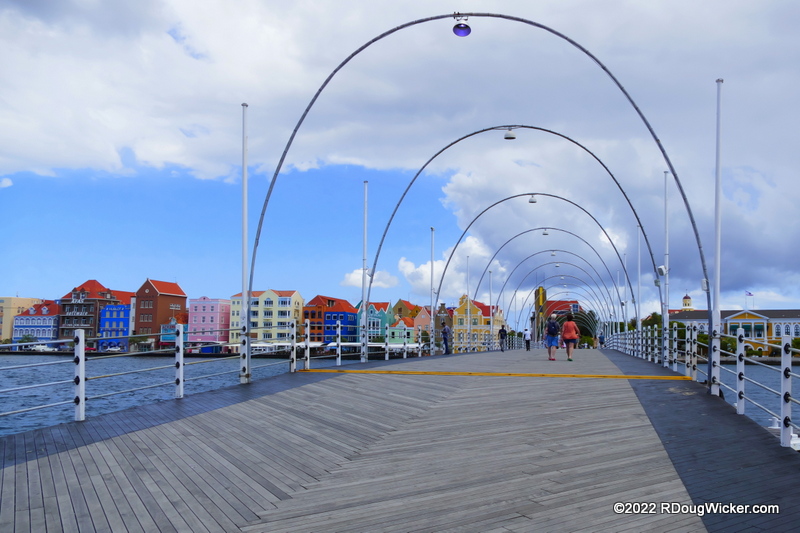 Reaching the west side of Sint Anna Bay, especially in the afternoon with the sun over your shoulder, expect to get a great shot of the Queen Emma wooden pedestrian pontoon bridge with the colorful Willemstad waterfront as an interesting background: