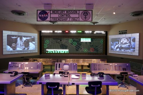 Next to the Rocket Garden is the Heroes and Legends pavilion, which includes the Mercury Mission Control Center as it would have appeared during John Glenn’s orbital Mercury Atlas mission (Mercury Atlas 6), which nearly ended in disaster: