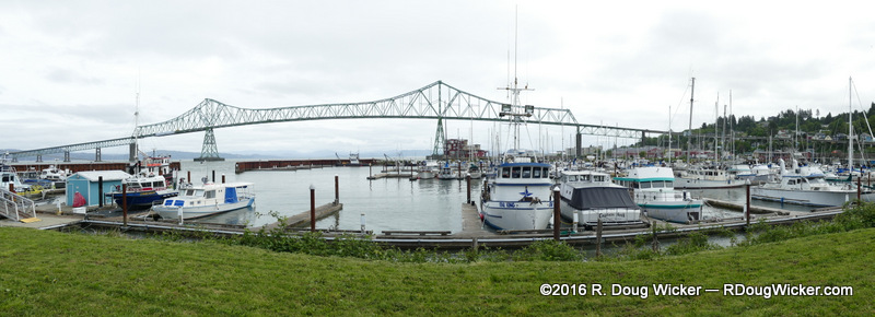 Leaving the cruise ship dock area takes you right by a marina with the Astoria-Megler Bridge as a backdrop: