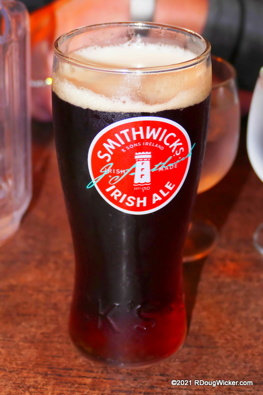 Finally, after a long day, it was time for dinner at a place we went back repeatedly during our stay in Dublin. That would be Quays Irish Restaurant. But today I was feeling more inclined toward some American fare, so I went with the chicken wings and a Smithwick’s Red Irish Ale: