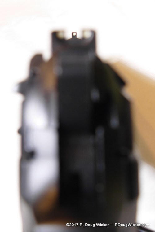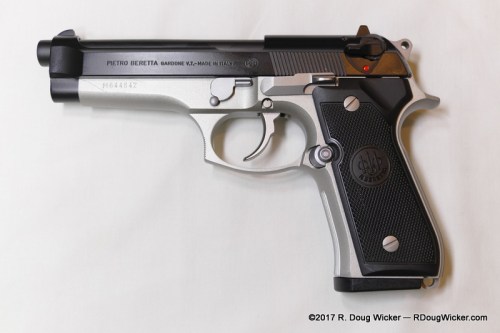 The 92FS is a combat pistol. It’s the M9 version of this pistol that in 1986 began replacing the famed Colt M1911, which had been in common U.S. military use for the preceding 75 years and which some U.S. military units continued to use until just recently — over 100 years in service! Being a combat pistol, the 92FS uses rather basic but functional three-dot sights: