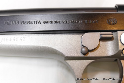 Which brings us to this next 92FS, which I stumbled across at my favorite local gun store (Collector’s Gun Exchange). This one is rather unique and somewhat hard to find in that it’s a “reverse two-tone”, meaning that the slide is Bruniton, the barrel matte blued, and the alloy frame set in “Inox” finish even though it’s not an Inox (stainless) frame. If you decide to track down one of these pistols for your collection, the model number is SPEC0523A.