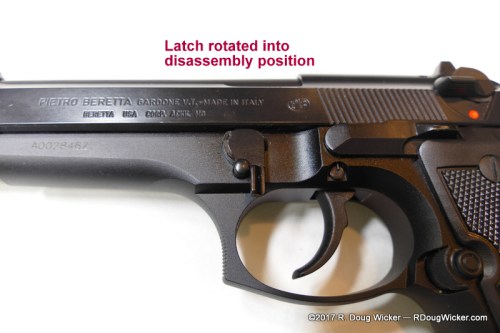 Beretta take-down latch rotated to disassembly position