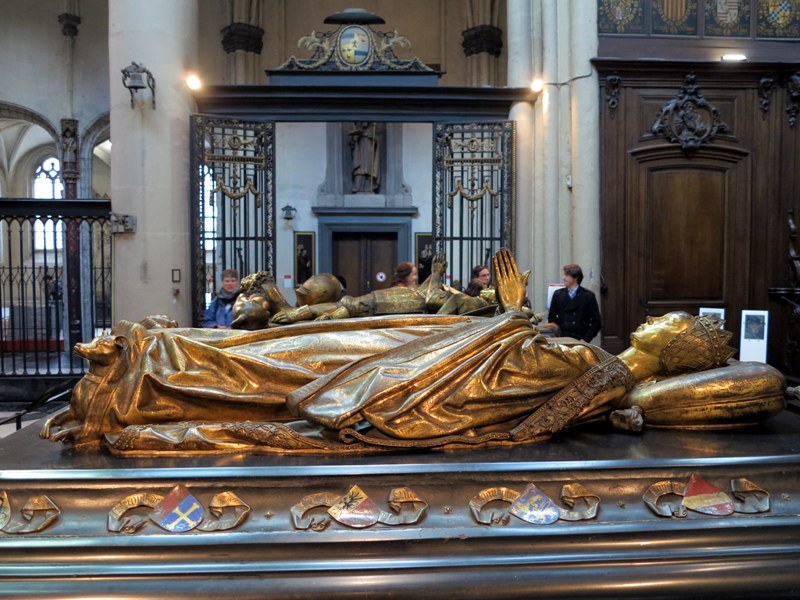 In the case of Bruges, that hometown church is the magnificent Church of Our Lady. Inside the Church of Our Lady you’ll find the tombs of Charles the Bold (Duchy of Burgundy)and his daughter Mary of Burgundy. These tombs are marked by ornate bronze sculptures lying upon intricately decorated beds of polished black stone.
