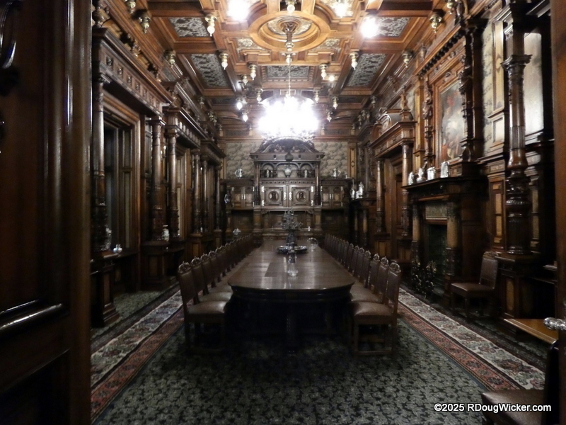 Today I’m going to present images of some of the rooms awaiting you in Peleș Castle. I begin with the image above of the three-story Hall of Honor with its incredible, richly detailed woodwork, corinthian columns, and other exquisite features. In case you’re wondering how one eats in a place this elaborate, here’s the dining nook: