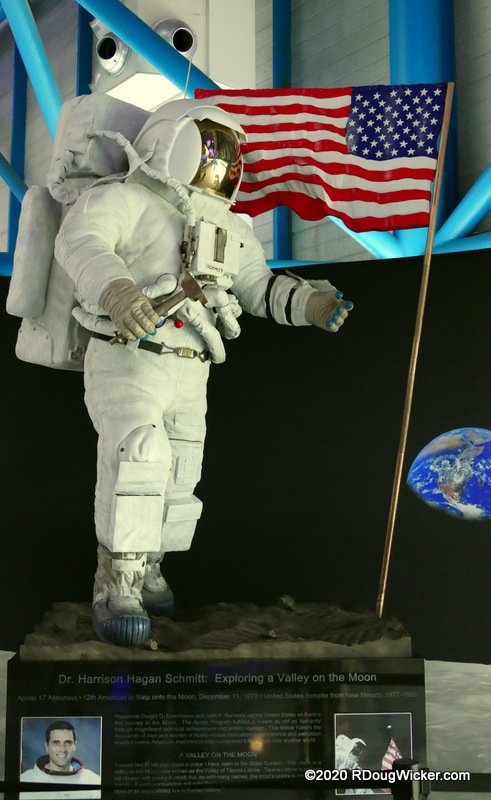 Here is a replica of the lunar suit worn by Gene Cernan during the Apollo 17 mission (the real suit is on display at the Smithsonian):