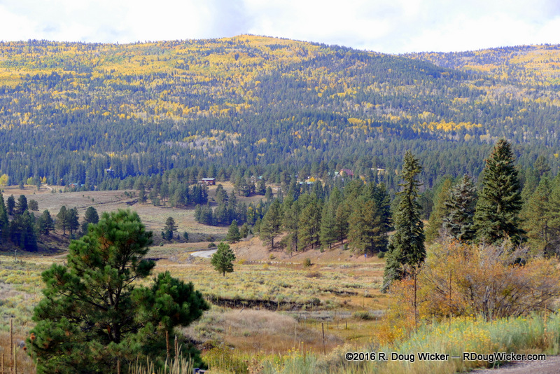 Our intended destination this night was the resort town of Red River, where after the long drive from Trinity Site we hoped to find decent lodging at an affordable price. You’ll see how we lucked out on Wednesday. I’ll just say for now that this is a place I can highly recommend on your tour of the Enchanted Circle Byway. Along the way we were treated to some magnificent perfectly lighted views beneath dramatic skies: