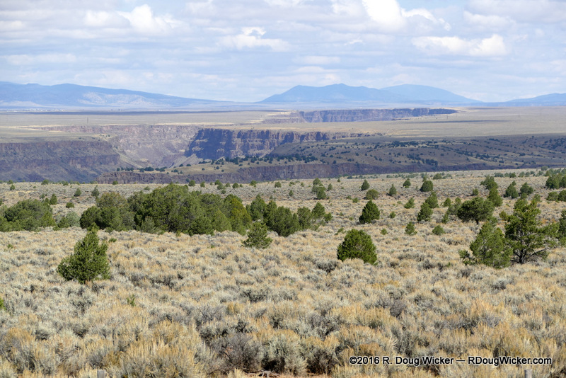 Below are two views of the Rio Grande Gorge taken from high ground southwest of Taos. The first shot was taken in the late afternoon on October 3, 2015. The second was taken near midday the following day as we concluded our trip and started home.