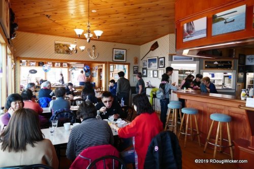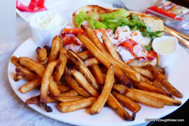 Ursula rate her chowder exquisite, and she thought it was one of the best she had the entire trip. The lobster roll was proclaimed good, but I thought it was rather small (just wait to see what we had in Bar Harbor, Maine later in this fall foliage series, just for comparison). My fried platter was just a bit of a disappointment. As with the lobster roll, the portion was heavy on the fries and light on the seafood. The shellfish and haddock could have used a bit more time in the fryer, as you can see from the blondish color, and the oil could have been a bit hotter for a crispier texture.