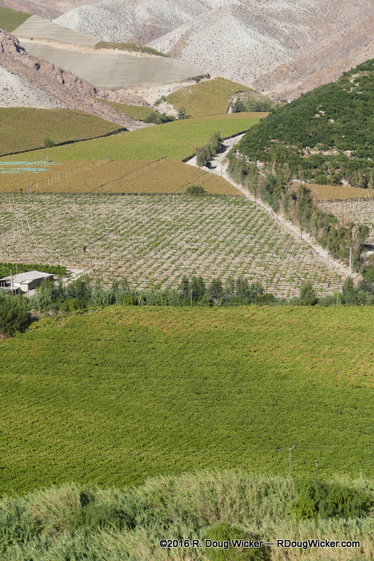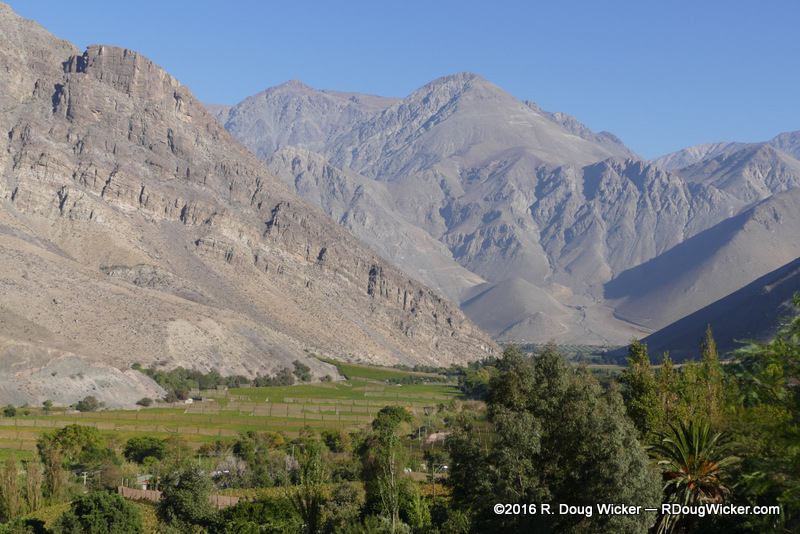 How is that possible? Why is this mid-desert valley so fertile? Because of the Elqui River, which is fed by snow runoff from the Andes Mountains to the east. That’s why you see so many vineyards here — plentiful water to keep grapevines alive, yet the ideal conditions for stressing them to produce the best possible grapes for wines.