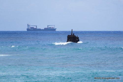 That wreck is farther out that it appears above from Trader Jacks. Here it is again from the Avarua shoreline west of where the photo above was taken”