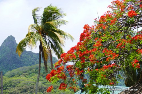 Looking for some really colorful flora to photograph? On of the most stunning on Rarotonga is the flamboyant tree, or flame free (Delonix regia), and there were in bloom everywhere: