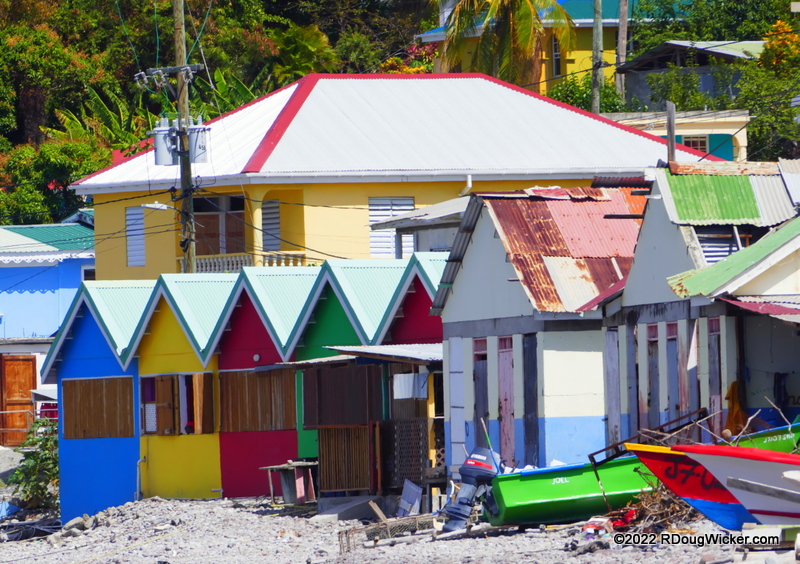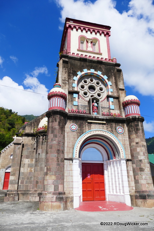 That charming church you see above is Saint Mark in the northeastern quadrant of Soufrière just yards from Bubble Beach Spa. The colors and architecture of Saint Mark may at first appear stark until you recall how colorful the surrounding buildings and boats are in this small village. Sat Mark is just a fun, fun structure to photograph when the light hits it right, as it did in this afternoon shot.