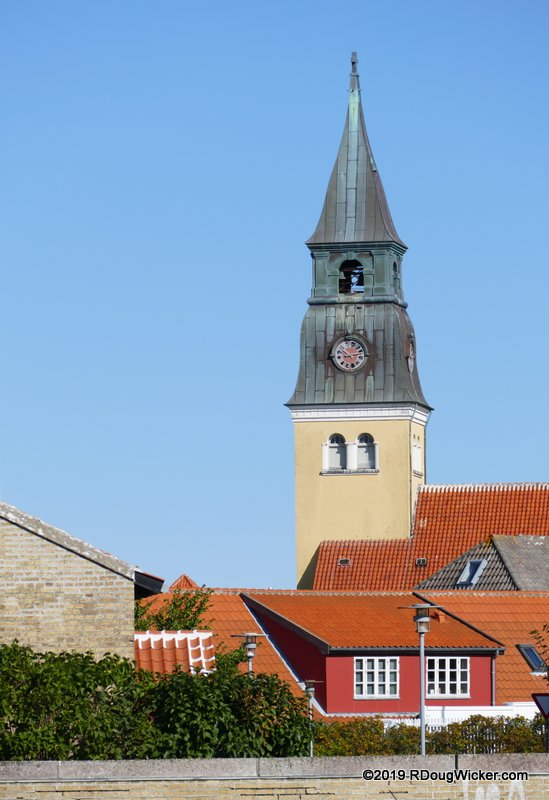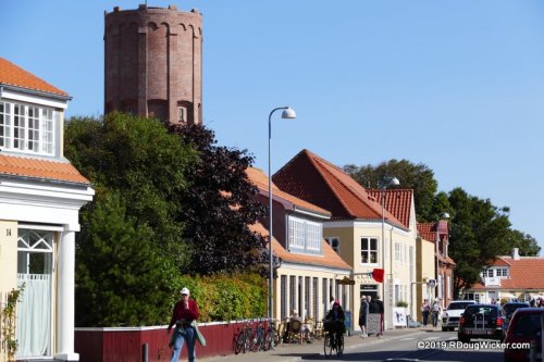 Heading back into town along Oddejev you’ll soon see a brown tower in the distance. And where Oddejev becomes Sankt Laurentii Vej, where it intersects with Markjev, you’ll see what that tower is. This is the Vandtaarnet i Skagen (Skagen Watertower), erected in 1934 and in use until 1983. It was constructed from 130,000 bricks, but today it serves as a tourist vantage point from June through August . . . if you’re willing to shell out a modest fee for entrance and able to climb 120 steps/111 feet/34 meters: