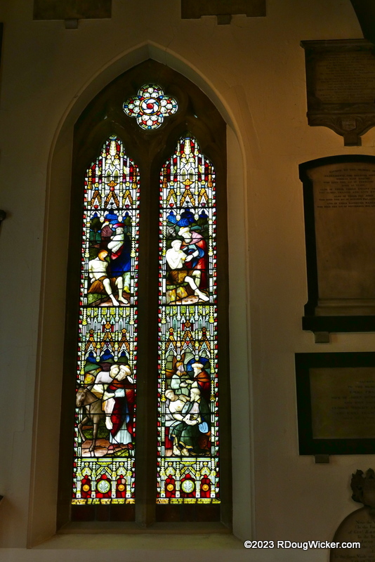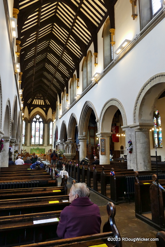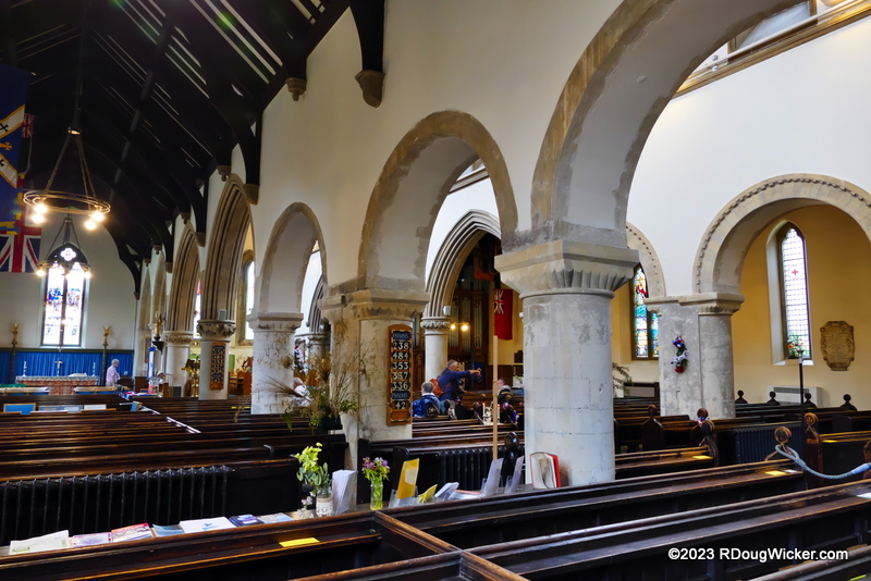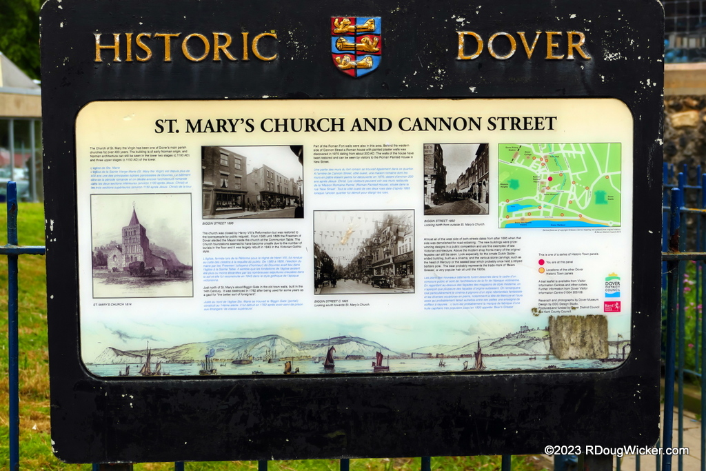 There are actually two St. Mary’s Churches in Dover. One resides east of town, high up on a hill next to Dover Castle (St. Mary sub Castro — St. Mary in the Castle), and it’s an ancient Saxon structure dating back to at least AD 1000, and perhaps even before. That’s not the one I’m going to show you today. Today’s St. Mary’s Church (Church of St. Mary the Virgin) is the one you glimpsed in Monday’s article. This Anglican church is around 100 years younger (circa AD 1100), with an extensive restoration conducted in 18943-1844.