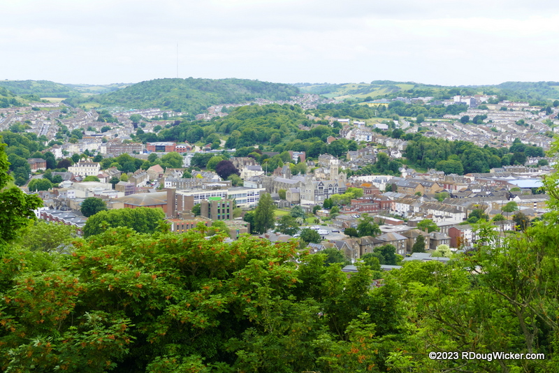 The castle and old Roman ruins are not the only views from high up on this hill. The vantage also affords great views of Dover far down below:
